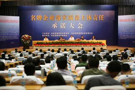 5月23日,为了落实国家质检总局和工业和信息化部联合下发的《关于生产企业全面落实产品质量安全主体责任的指导意见》文件精神,充分发挥名牌企业落实企业质量主体责任表率和带动的作用,促进全省企业全面落实产品质量安全主体责任,强化质量主体责任意识。由省质监局、省经信委联合主办,省质量评价协会协办的名牌企业落实质量主体责任承诺大会在济南隆重召开。省质监局副巡视员王光辉、省经信委科技处调研员封宗庆等有关领导出席会议并讲话。济南、泰安、莱芜、德州、滨州、聊城市山东名牌产品企业法人、质量部门负责人,有关市质监局质量管理人员,省各大新闻媒体等400余人参加了会议。