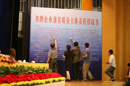 会议期间,全体参会名牌企业法人代表郑重在倡议书主题墙上签字承诺,积极响应保证产品质量安全倡议,决心加强全员质量安全意识,认真贯彻落实本次大会精神,严格生产全过程质量控制和把关管理,全面落实生产企业质量主体责任,提升产品和服务质量,转方式、调结构,为山东经济又好又快发展做出贡献。